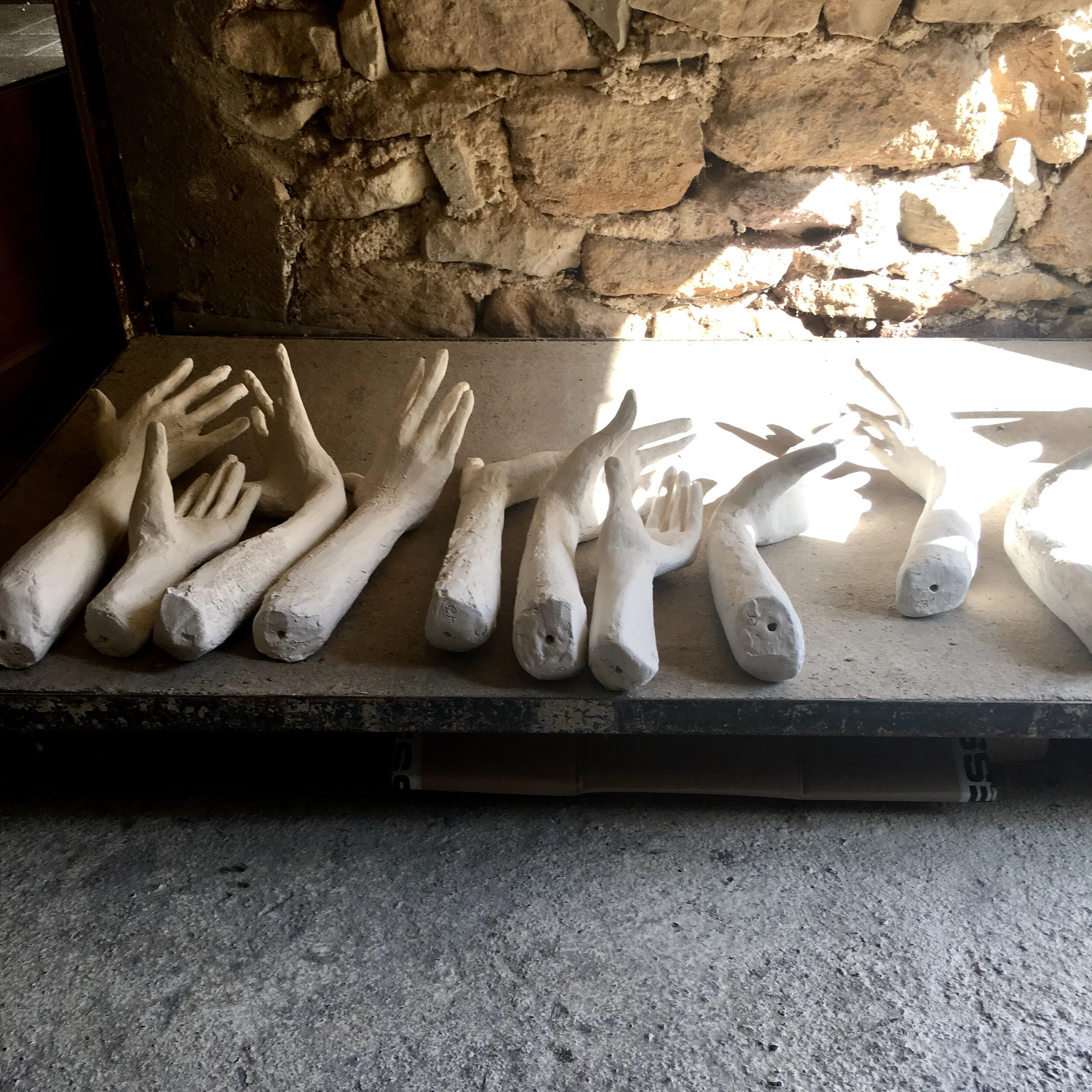 Série de 10 sculptures en argile, finition brute, moulées en Espagne et en Dordogne.