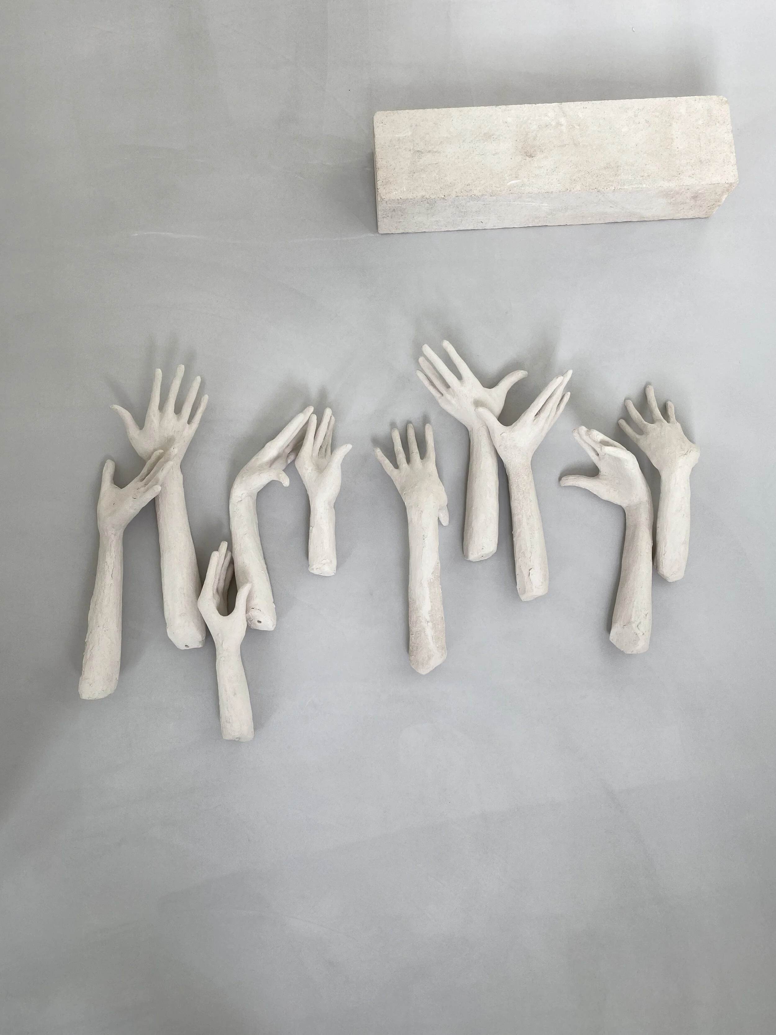 de la main et son énergie. Au toucher se greffent des empreintes de textile,